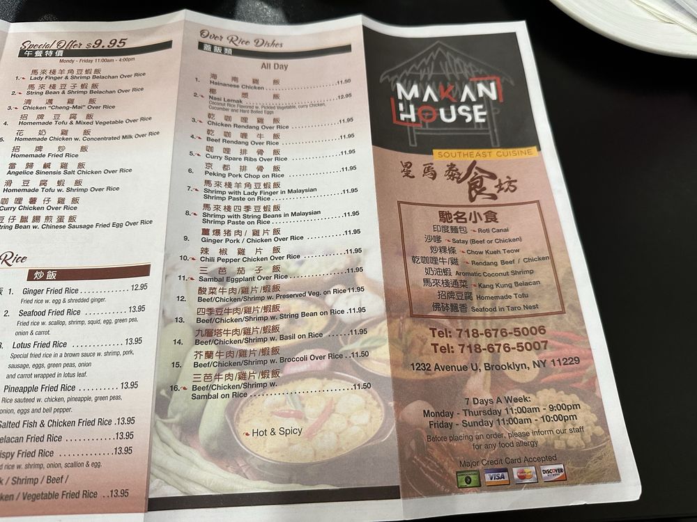 Introducing Makan House, a Malaysian gem located at 1232 Avenue U Brooklyn, NY. This Asian-owned restaurant offers a diverse menu with a focus on Malaysian cuisine. Customers rave about the delicious dishes, including laksa, kangkung, roti, curries, and rice dishes. The seafood with taro nest and Chiang Mai clams are must-tries, cooked to perfection with flavorful sauces. The service is top-notch, with friendly staff and a welcoming atmosphere. Make sure to save room for the complimentary dessert, Apam Balik, a sweet ending to a fantastic meal. Makan House is a hidden culinary treasure, offering a taste of Malaysia right in Brooklyn.